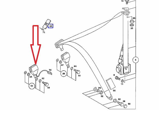 Left front seat belt buckle 560sl 88-89