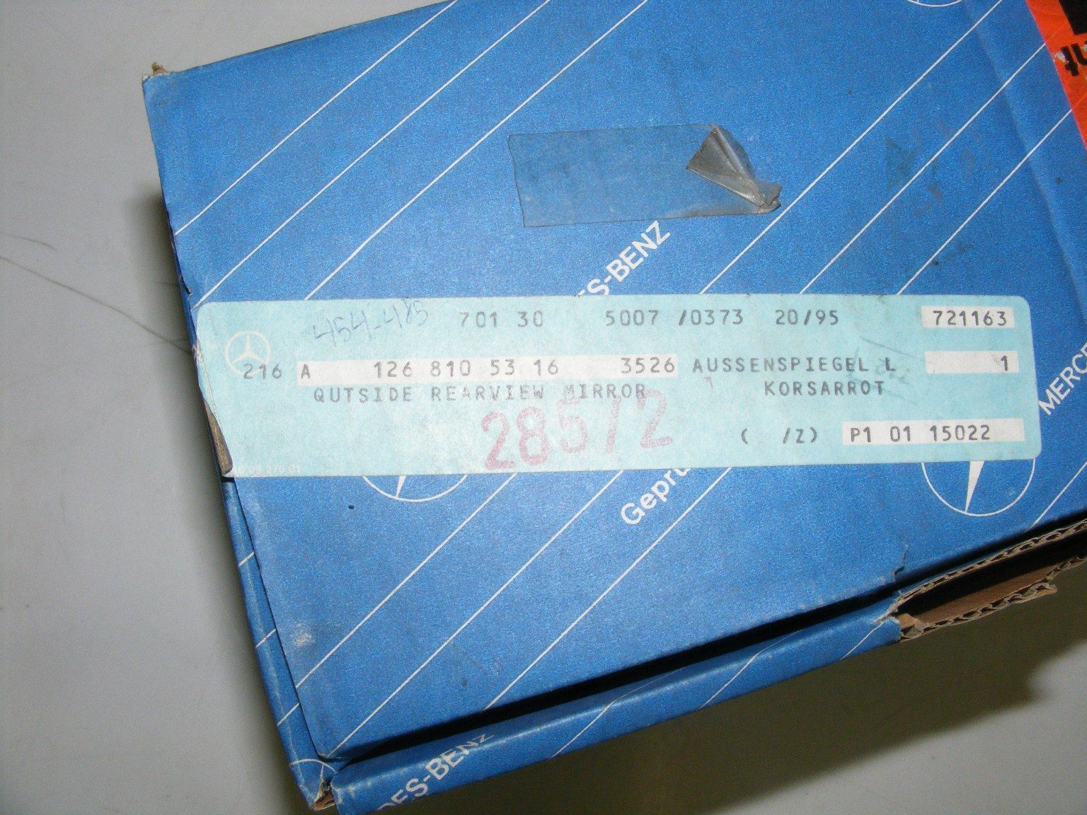 Left mirror frame without glass new old stock ,red Will fit W126 models 81-85 300sd 380se 380sel