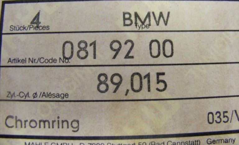 BMW piston made by Mahle 89.00mm High compression will fit 2002tii Sold as set of 4 only